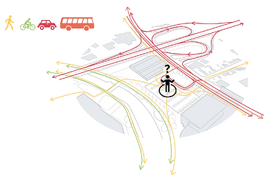 Il existe dans le quartier, un nœud de circulations entre la rocade et la route de Lorient. En nous y intéressant de plus près nous avons remarqué à côté du Stade Rennais, un espace délaissé, en bord de Vilaine, traversé par les piétons qui n’y trouvent pourtant rien à faire, et entravé par la halle Automnia.